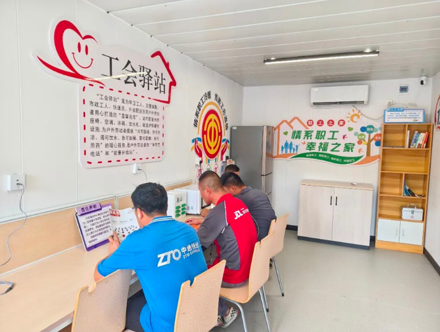 走進(jìn)驛站,貼心服務(wù)隨處可見。休息區(qū)里,桌椅整齊擺放,書架上時事新聞、生活常識、文學(xué)佳作等書刊琳瑯滿目,為忙碌的心靈提供休憩空間;墻上排列的手機(jī)充電設(shè)備隨時“待命”,冰箱里的應(yīng)急物品、顯眼處的醫(yī)療急救包、可加熱食物的微波爐,從日常需求到應(yīng)急保障,全方位解決勞動者的實(shí)際難題。值得一提的是,考慮到雨雪等天氣變化帶來的出行不便,驛站會常備雨傘供戶外工作者取用,為他們遮風(fēng)擋雨;進(jìn)入寒冷季節(jié)后,驛站則提前開啟暖氣,幫助他們驅(qū)散寒意。這些服務(wù)精準(zhǔn)落實(shí)了“冷可取暖、熱可納涼、渴可飲水、累可歇腳、傷可用藥”的服務(wù)目標(biāo)。“我們不斷升級服務(wù),希望戶外勞動者們在這里能全方位地感受到細(xì)致入微的關(guān)懷?!焙游髦脴I(yè)相關(guān)負(fù)責(zé)人表示。